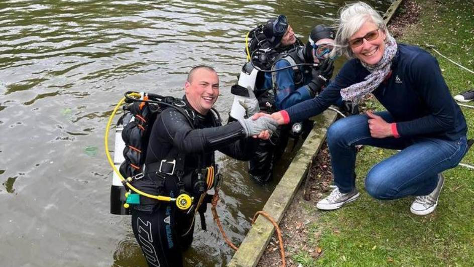The following day, a devastated Lyon told her friend, who suggested that she contact the Bedford Scuba Divers club. To her surprise, the club was quick to respond: Mags Martin, the assistant training officer, immediately arranged the mission via a Whatsapp group.