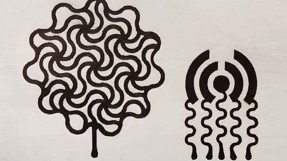 The pencils’ graphite is conductive, meaning it can capture the bodily signals, and the mesh-like geometric patterns sketched can record information – not unlike an electrocardiogram recording one’s heart rate and respiratory rate.